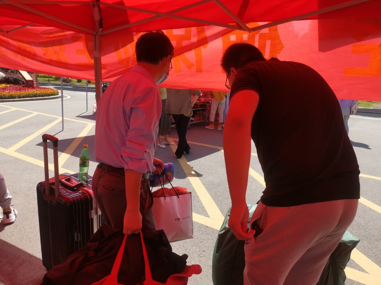 党员同志们看到学生的行李比较多,主动拎起行李把学生送到寝室,让学生们感受到“家”的温暖。