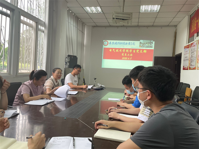 为进一步统一思想认识,提高学生党员的先锋模范作用,推动作风建设在群众中做深做实,6月8日下午,电气技术学院学生党支部在知行楼102会议室召开学生党员大会,由于部分实习学生不在校,因此本次会议采取线上线下结合的形式召开。会议由支部书记张丽主持。