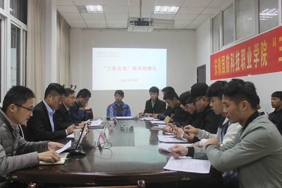 2017年11月30日,校企双方在电气技术学院会议室隆重举行三安光电班开班仪式。出席开班典礼的有电气技术学院院长李翔、副院长侯国栋,安徽三安光电有限公司苏勇以及“三安光电班”全体同学。