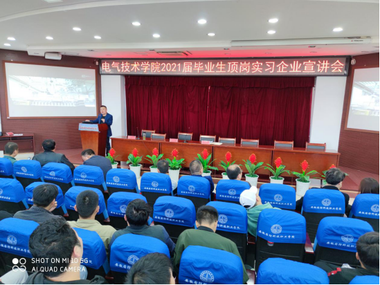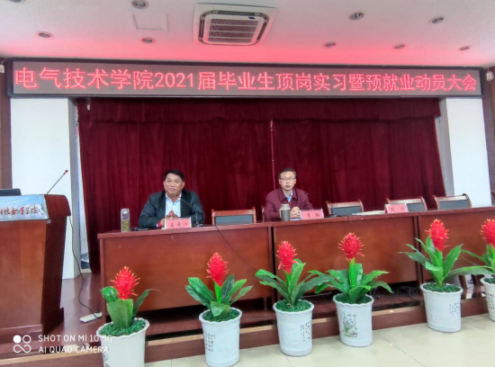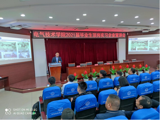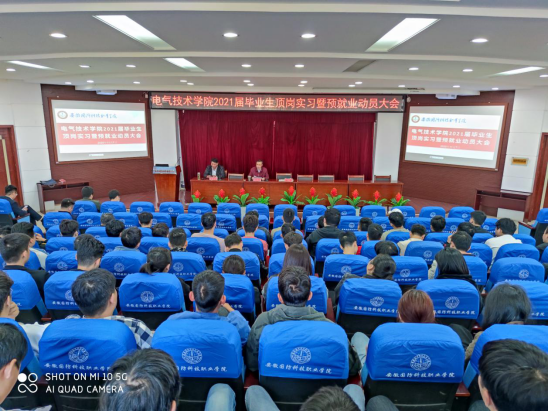 接着,电气技术学院院长李翔为全体在校2021届毕业生做了顶岗实习动员。李院长结合已经跟岗实习的订单班学生实习情况,要求同学们端正态度,认真对待实习工作,严格遵守厂纪厂规,同时也就学校专升本相关规定做了详细解读,鼓励同学们参加专升本,提升个人学历。
