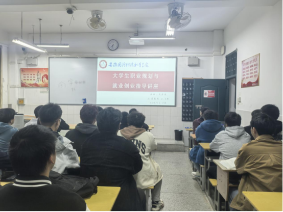 为引导学生树立正确的择业观、就业观,明确就业方向,帮助同学们更好的选择就业企业,2025年11月15日,就业辅导员吴泽建老师在2教103教室为130名在校学生开展了就业指导专题讲座。