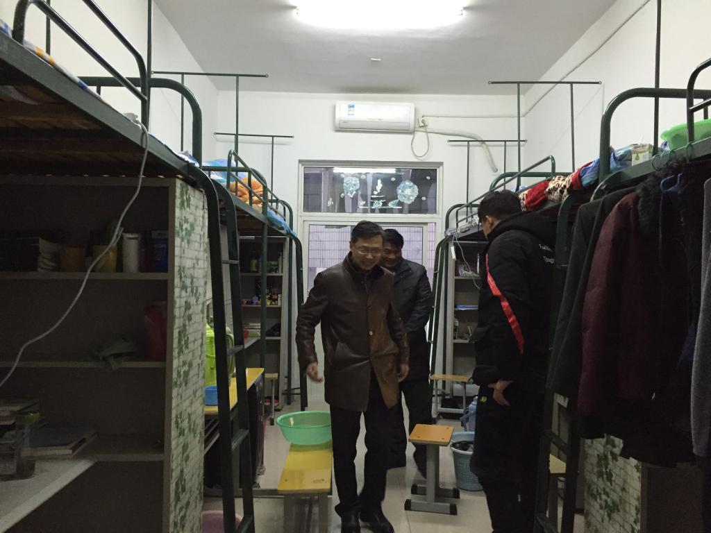 班会结束后,李院长和王书记带领班主任和辅导员深入8号男生公寓,开展卫生大检查。在检查过程中,他们与同学们亲切交谈,了解学生的学习、生活、思想动态,嘱咐同学们一定要注意开窗通风,做好宿舍环境卫生,严禁使用违章电器,切实做到用电安全。
