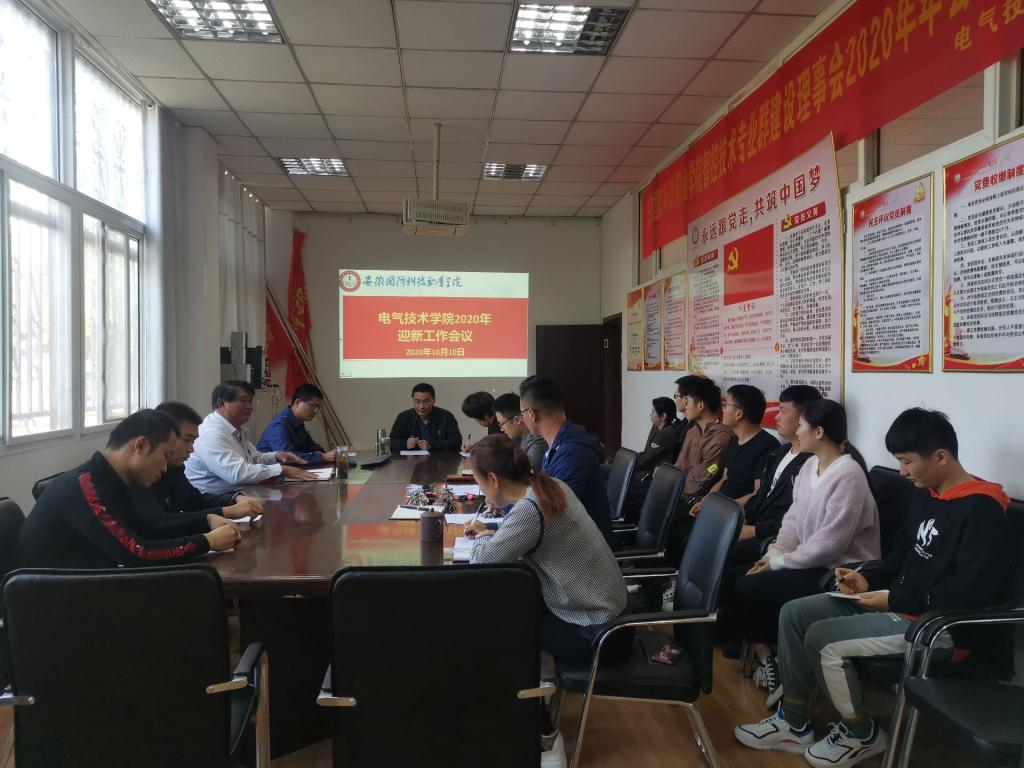 为扎实做好2020级新生迎新接待工作,电气技术学院于10月9日下午在学院会议室召开新生班主任专题会议,部署相关工作,会议由党总支书记王希江主持,全体新生班主任、学生管理人员及专业带头人参加了会议。