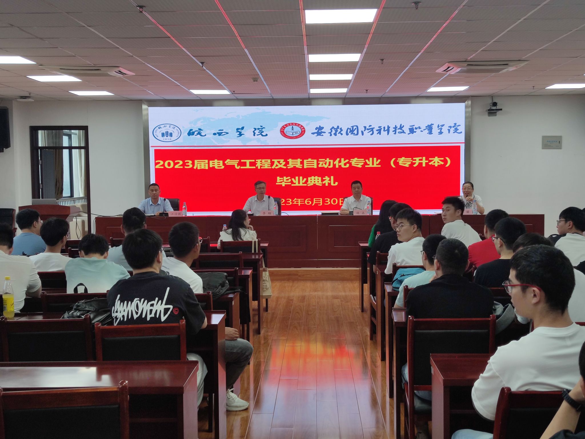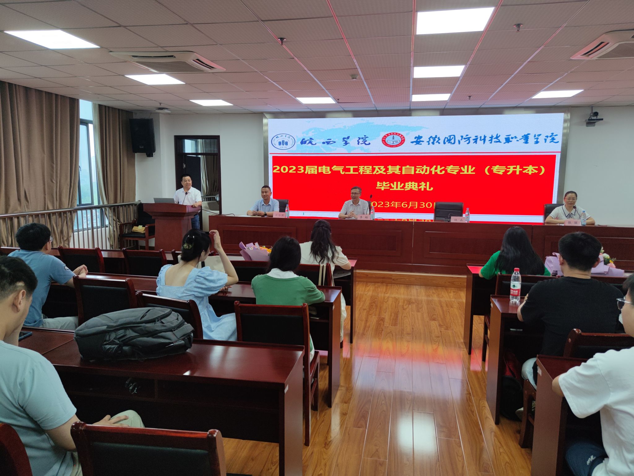 时光荏苒,不负韶华;岁月如梭,未来可期。6月30日上午,电气技术学院2023届专升本联合培养班毕业典礼在校秉心楼12楼会议室隆重举行。皖西学院电气与光电工程学院党委书记林森、beat365唯一官方网站电气技术学院院长李翔、副院长江治国、电气技术学院党总支副书记张丽、21本科电气1班班主任尹晶晶、21本科电气2班班主任汤晓莉和部分返校毕业生参加了此次会议,会议由党总支副书记张丽主持。
