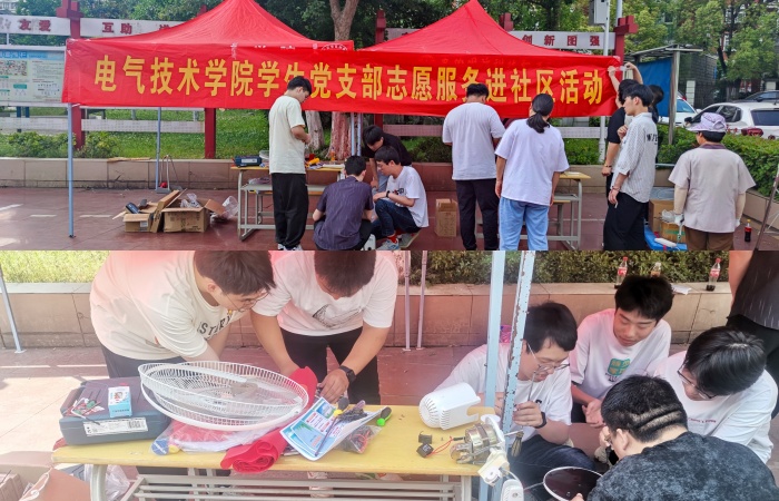5月22日下午,电气技术学院自动化创新协会联合学生党支部走进六安市裕安区小华山街道春江社区春江·河滨花园小区,共同开展“家电维修进社区,志愿服务暖人心”志愿服务活动。