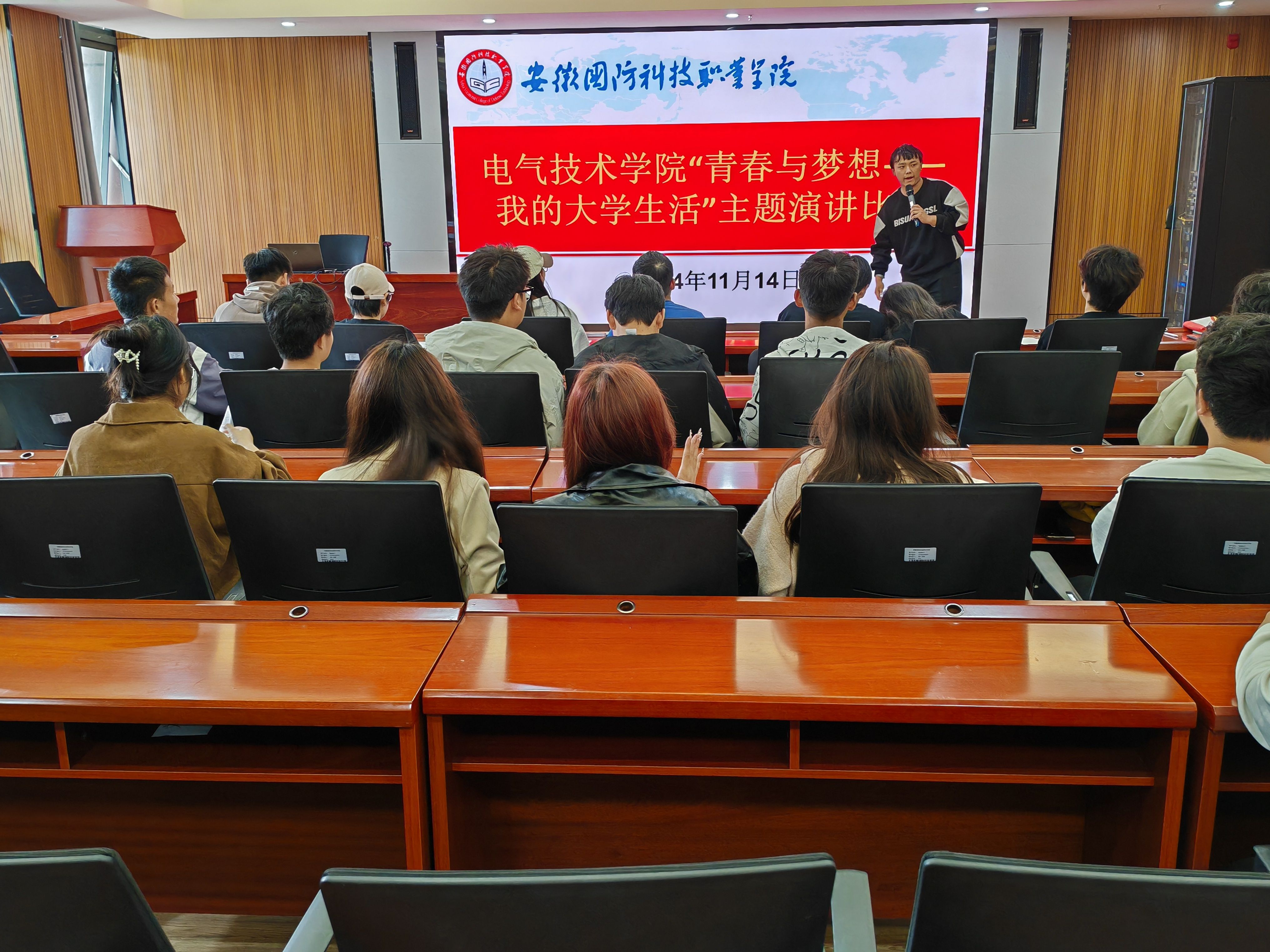 为充分展示我院大学生积极向上、奋发有为的精神面貌,营造朝气蓬勃的校园文化氛围,11月14日下午,电气技术学院在产教融合中心第一报告厅成功举办“青春与梦想——我的大学生活”主题的演讲比赛。