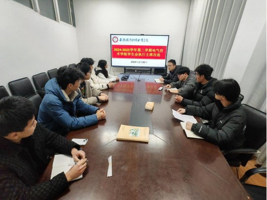 为深入贯彻落实关于学联学生会改革相关要求,持续做好电气技术学院学生会工作,2月26日晚,电气技术学院第四届学生会委员会第二次全体会议在知行楼102召开,顺利完成了院学生会执行主席轮值调整工作。电气技术学院第四届学生会全体委员参加了此次会议,会议由电气技术学院团总支书记、院学生会秘书长陈俊主持。