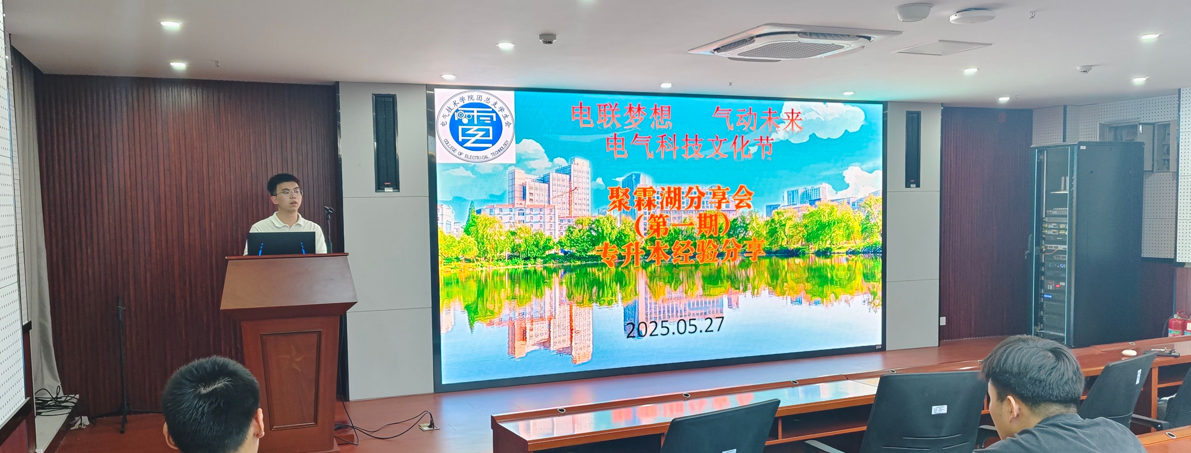 本网讯(学生通讯员 宋泽)为帮助在校专科生明确升本目标、掌握备考策略、增强升学信心,按照《电气技术学院2025年 “电联梦想 气动未来”电气科技文化节暨学风建设活动实施方案》计划,电气技术学院于5月27号晚在产教融合中心A区第二报告厅成功举办了“聚霖湖”专升本经验分享会活动。活动吸引了众多怀揣升学梦想的同学热情参与,现场气氛热烈。