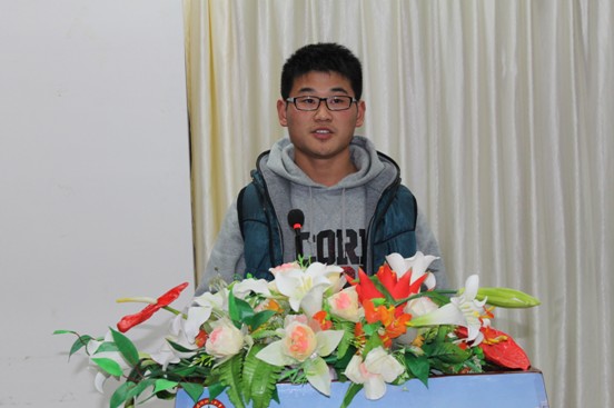 2012-2013学年度国家奖学金获得者电气122班代振同学作为学生代表作了热情洋溢的演讲,向同学们介绍了自己的学习经验,表明了自己在今后的生活和学习上的决心,积极做好先锋模范作用。