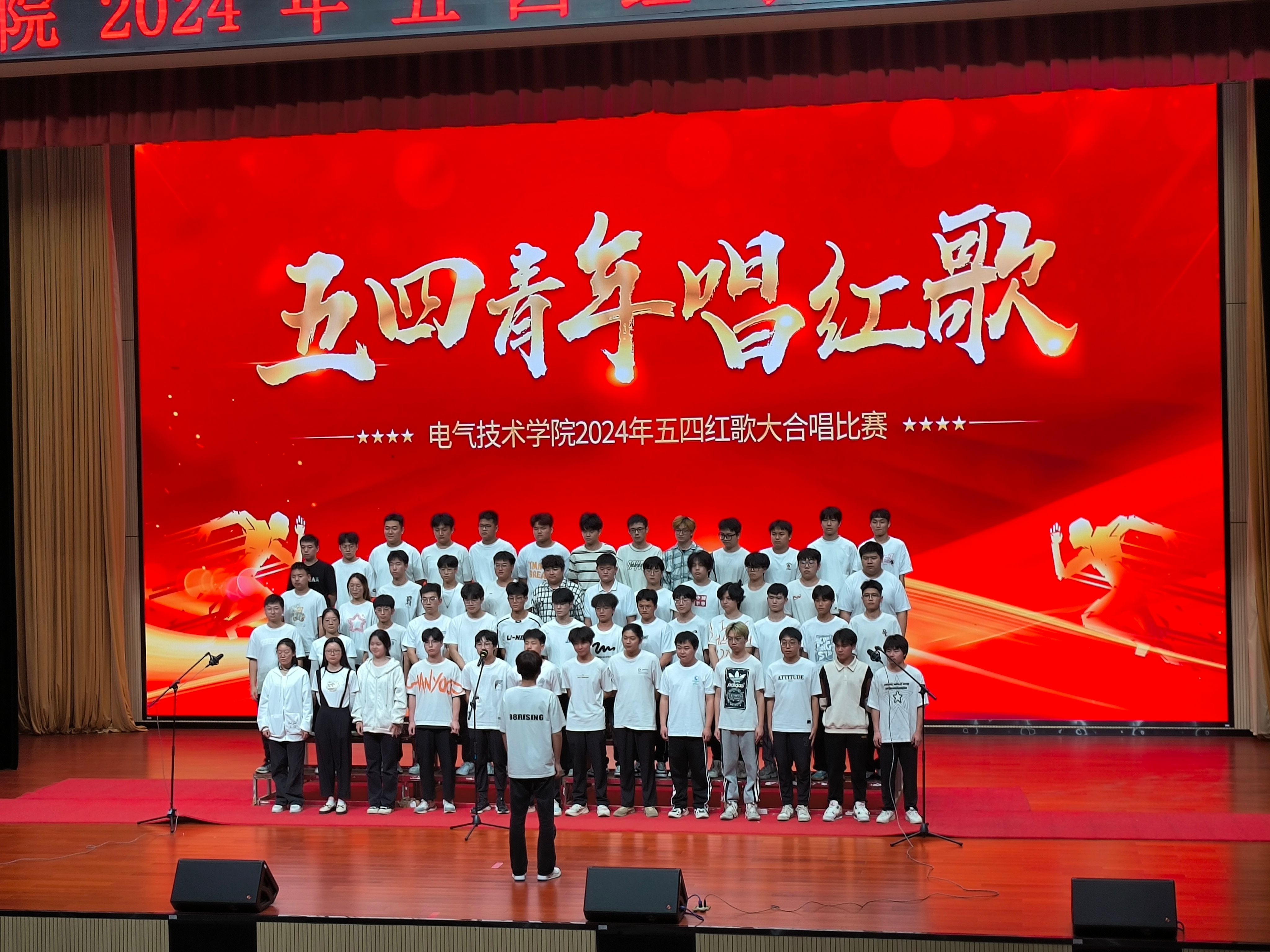 为全面学习宣传贯彻党的二十大精神,弘扬“爱国、进步、民主、科学”为核心的五四精神,激发广大青年爱党爱国爱社会主义的热情,积极培育和践行社会主义核心价值观,4月25日晚电气技术学院组织各参赛班级在校产教融合中心多功能报告厅举办五四红歌大合唱比赛。
