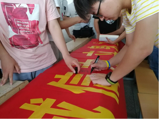最后,现场的同学们走向讲台,在“承诺于行,至任于信,诚信为立身之本。”条幅上郑重签下自己的名字,同时也签下了自己诚信受助、诚实守信的一份承诺,借此表明自己坚守诚信的决心。