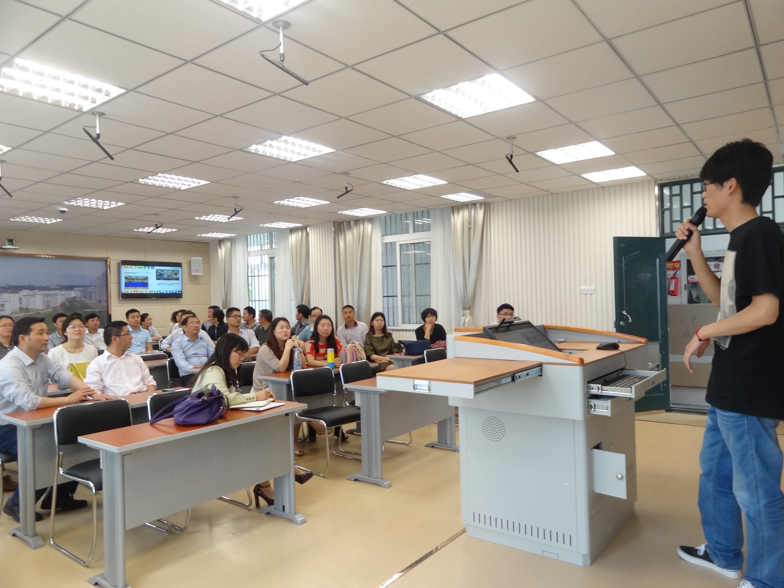培训内容主要有两部分:一是课堂教学录制的操作流程,二是课堂教学视频文件修改、上传方法。企业工程师现场演示讲解,各位老师边观看边提问,还有部分老师亲自尝试了操作过程,现场气氛热烈,培训取得了圆满成功。