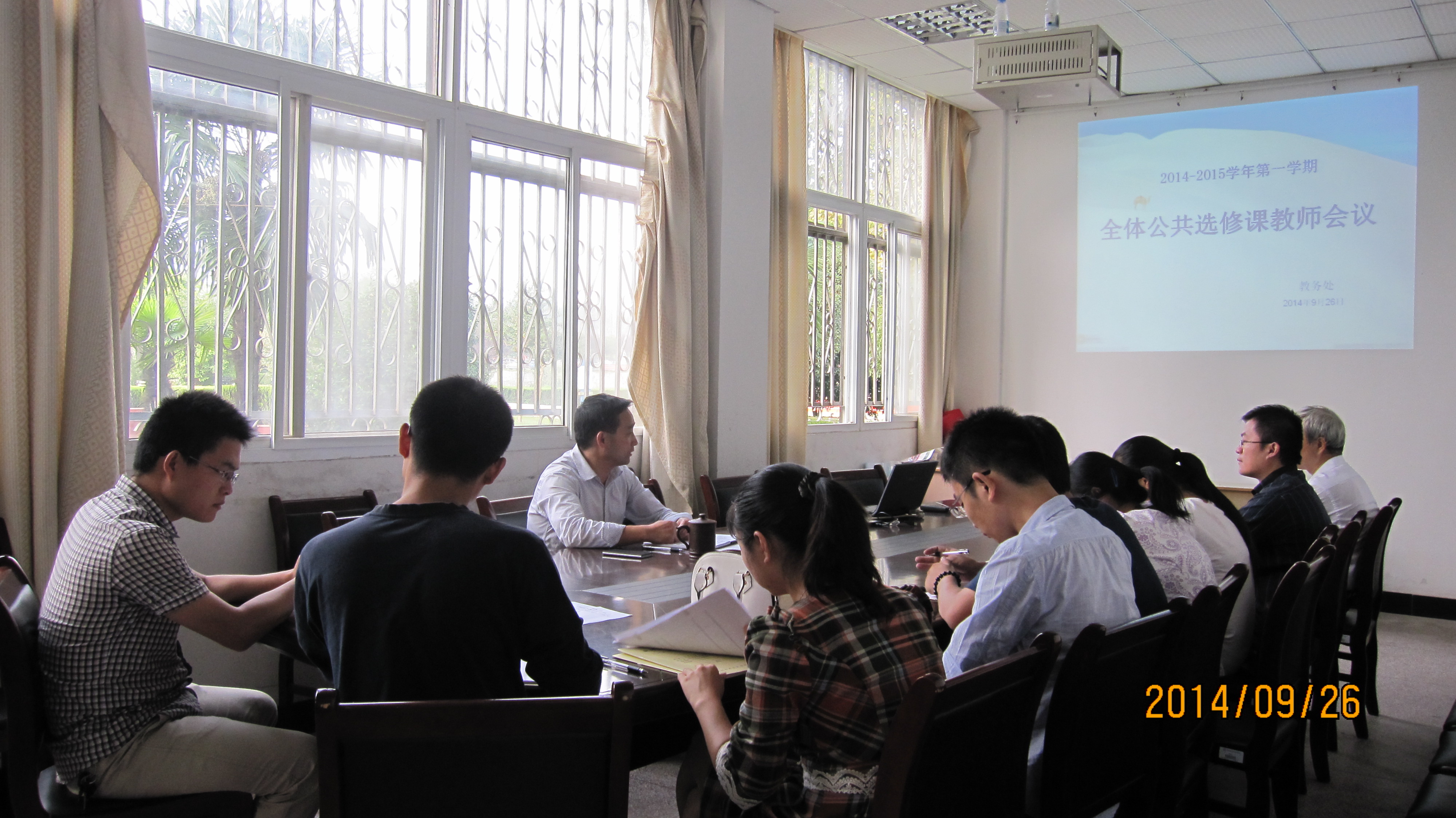 2014年9月26日下午4:30,教务处在机电工程系会议室召开了公共选修课任课教师会议。会议由教务处处长王志宏同志主持,所有公共选修课任课教师参加了会议。