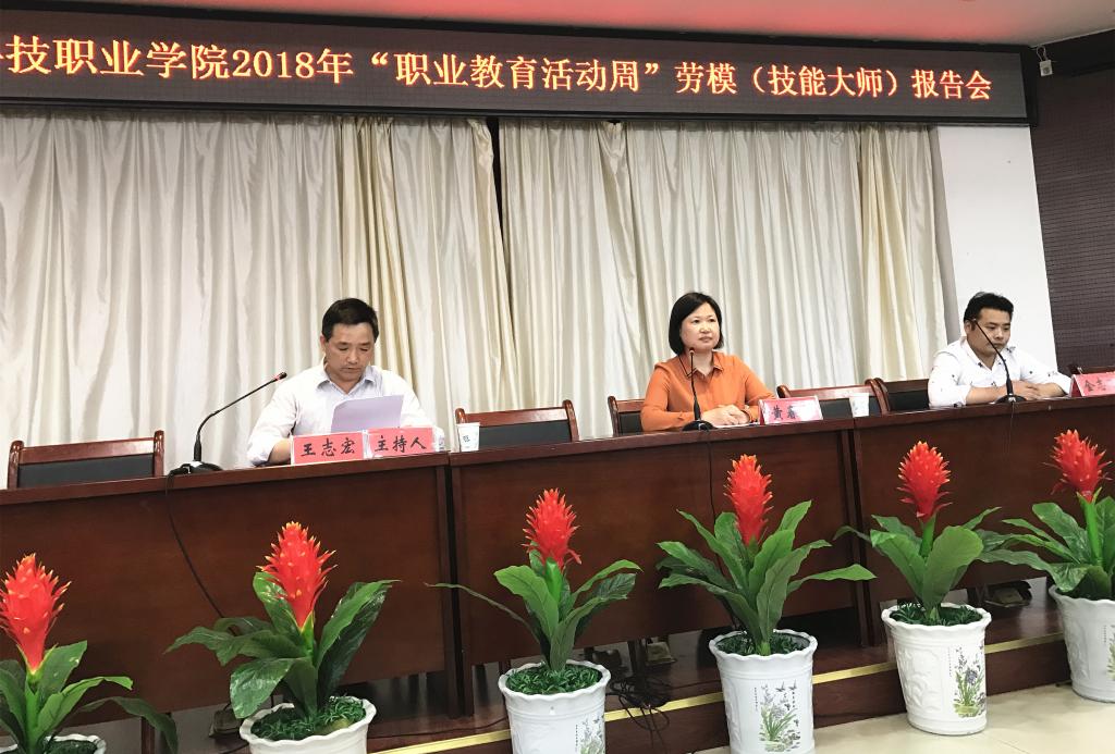 5月2日下午,beat365唯一官方网站2018年“职业教育活动周”劳模(技能大师)报告会在图书馆报告厅举行。报告会邀请全国劳动模范、全国人大代表、全国技术能手、中共六安市委委员黄春燕,技术能手金志飞分享他们在技术创新中的先进事迹。教务处领导、各二级学院学生代表参加报告会。