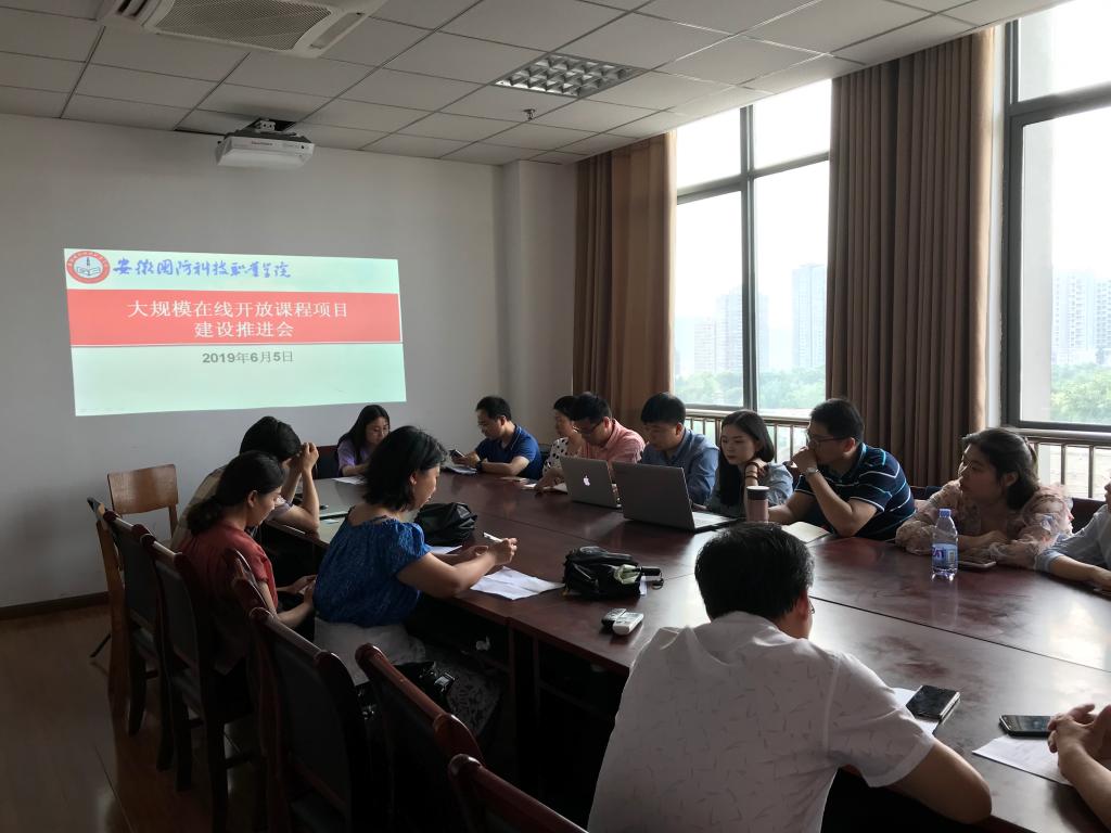 为推进已完成招标建设的大规模在线开放课程项目建设进度,提升课程建设质量。6月5日下午,教务处(科研处)召开大规模在线开放课程项目建设推进会,会议由科研处副处长白斌丽主持,课程制作公司北京智学客公司代表、大规模在线开放课程项目负责人参加了本次会议。
