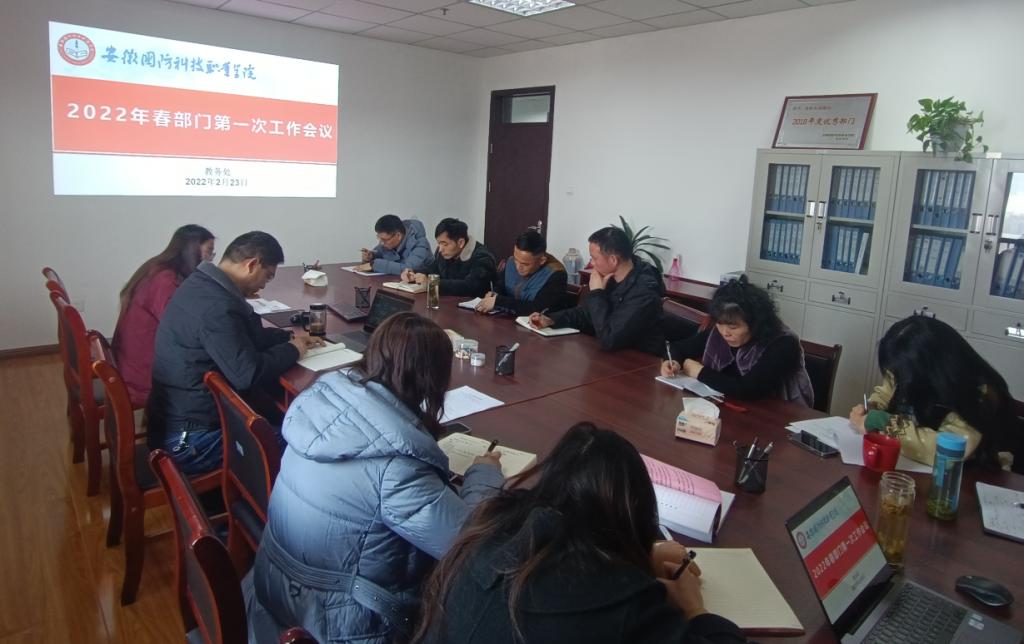2月23日下午两点,教务处在秉心楼1206会议室召开2022年度春季部门第一次工作会议,部门全体职工参会,会议由处长朱修传主持。