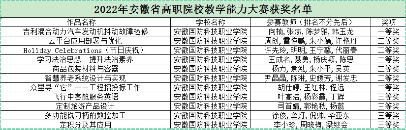 beat3652022年安徽省高等职业院校教学能力大赛获奖名单