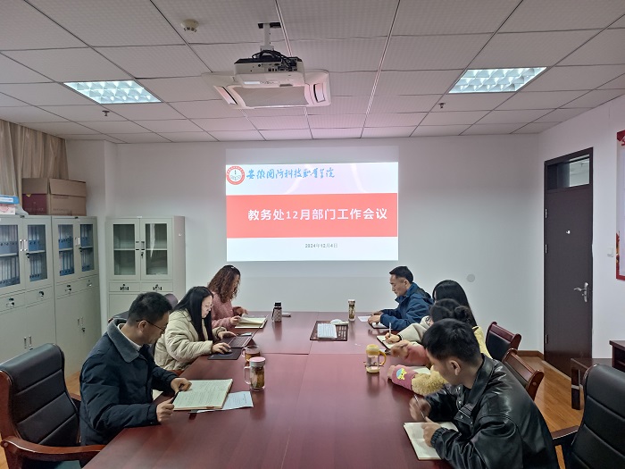 12日4日下午,教务处在秉心楼1206会议室召开2024年度12月份部门工作例会,部门全体职工参会,会议由教务处处长朱修传主持。