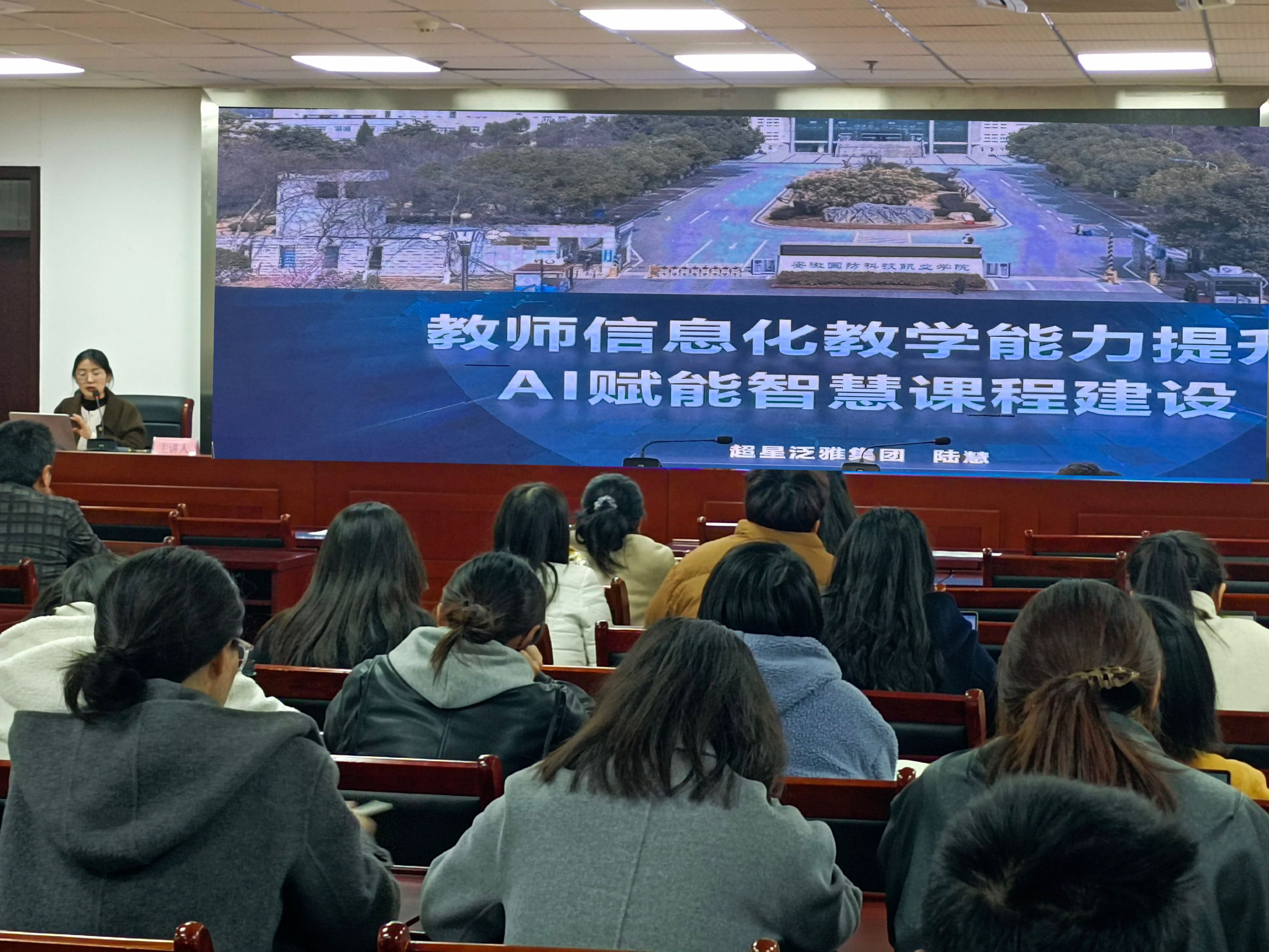 随后,超星信息技术发展有限责任公司陆慧女士围绕信息化教学能力的提升及AI技术在智慧课程中的应用展开培训、讲解。通过生动的案例分析、实操演示和互动讨论,参训教师深入了解了如何有效利用信息技术手段,来丰富教学内容、提高教学效率与质量。同时,培训还特别聚焦于AI技术如何助力个性化教学、智能评估与反馈、以及促进学习方式的创新,激发了教师们对智慧教育的无限遐想与探索热情。