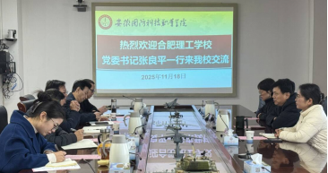 11月18日上午,合肥理工学校党委书记张良平一行beat365交流,双方在秉心楼第一会议室围绕高职专业学院内涵建设开展深度研讨。校党委副书记、校长徐正红,教务处、学生处、招生就业办公室、机械技术学院等相关部门负责人参加交流会。