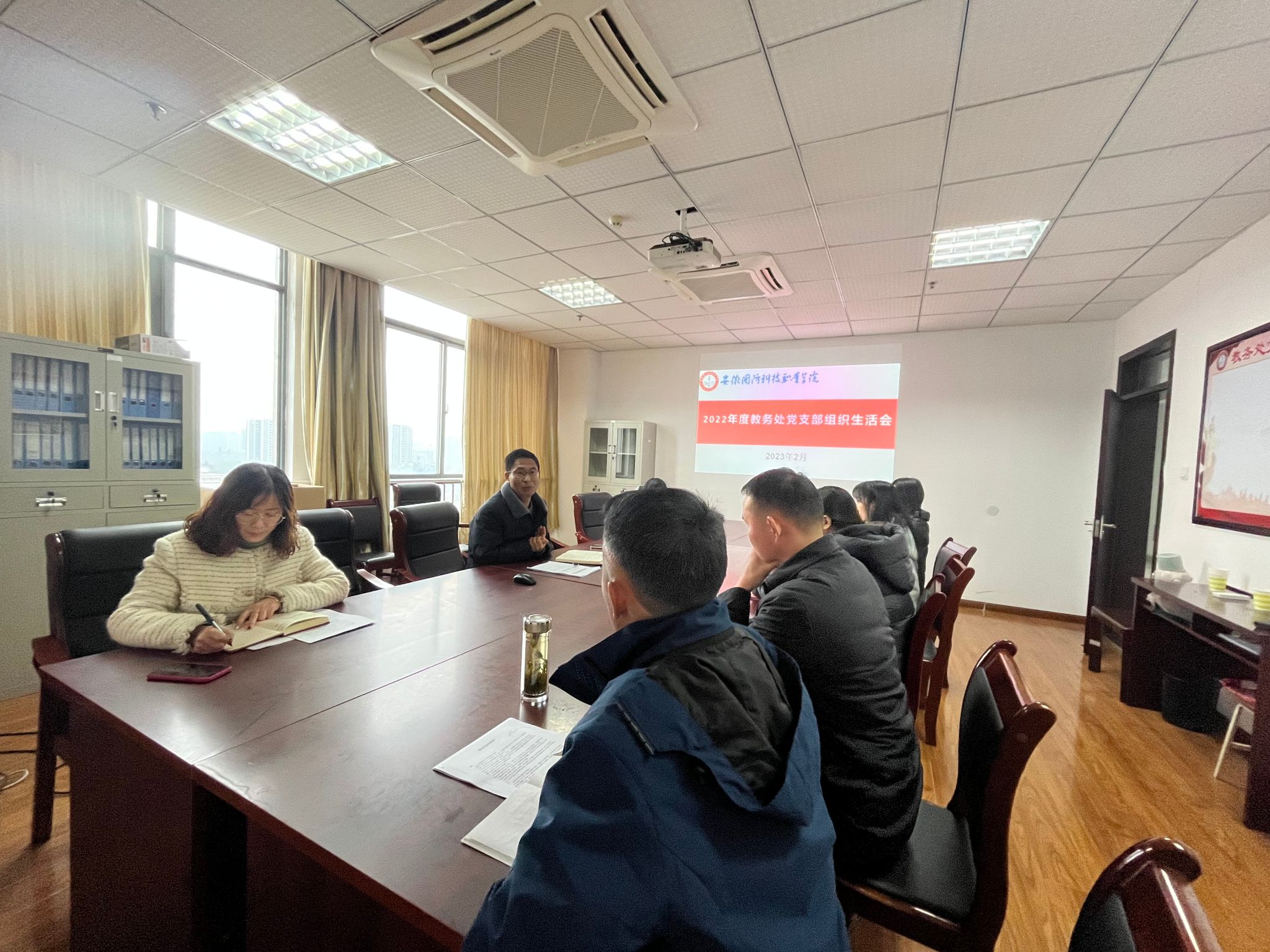 2月22日下午,教务处党支部召开2022年度组织生活会,并开展民主评议党员活动,全体党员参加会议。