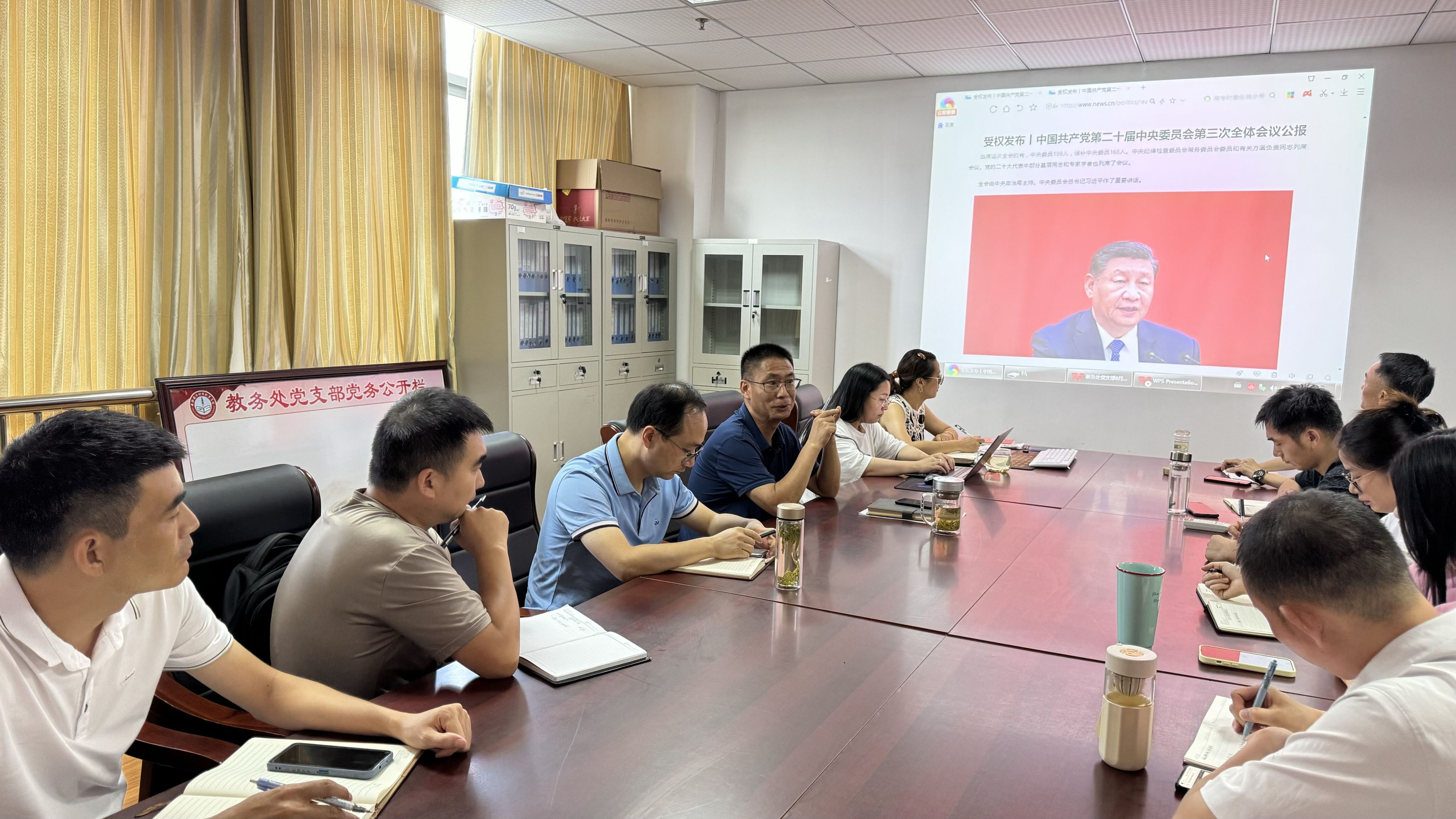 中国共产党第二十届中央委员会第三次全体会议,于2024年7月15日至18日在北京举行。习近平总书记作重要讲话。教务处党支部组织全体党员第一时间通过多种方式学习全会精神。党员同志们纷纷表示要深入学习领会全会精神,为进一步全面深化改革、推进中国式现代化贡献国防力量。