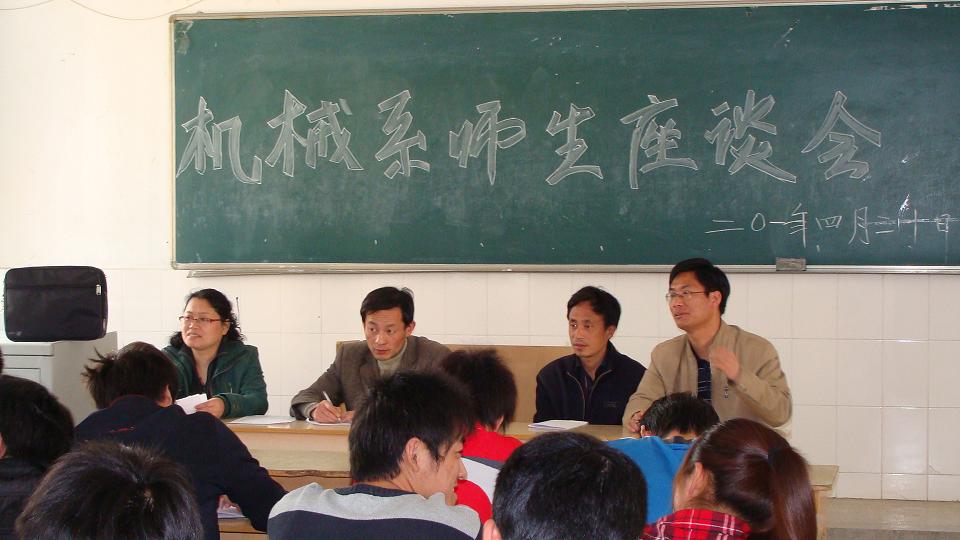 2010年4月30日下午四点,机械工程系督导组在2号楼203教室召开08级、09级学生代表座谈会.认真听取学生代表们对当前我系教育教学方面提出的建议.并对有些问题当场给予解答,督导组成员逐条记录学生提出的建设,会后将认真整理,反映给领导.以便及时解决落实.整个会议过程非常热烈,取得良好效果。