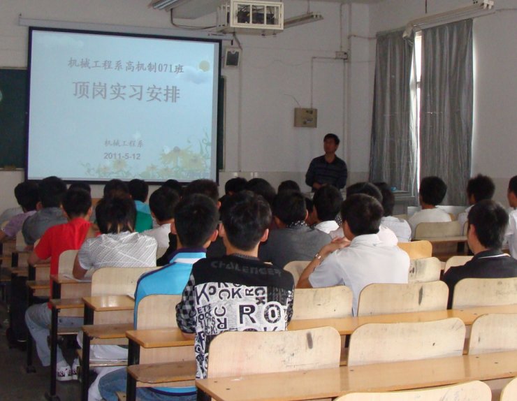 5月12日下午,在二号教学楼108教室,机械工程系召开高机制071班顶岗实习动员大会,会议由系总支副书记孙武主持。
