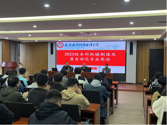 (机械技术学院 吴天跃)在2023年12月9日下午,机械技术学院邀请了皖西学院机械与车辆工程学院副院长许锋教授以及机械工程教研室主任林华副教授,在产教融合中心第一会议室为2023级机械设计制造及其自动化专业本科班新生举办专业导论讲座。此次讲座由机械技术学院副院长熊良平主持,23级机械本科班学生均参加了此次讲座。