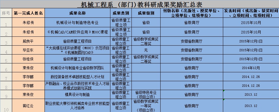 机械工程系 (部门)教科研成果奖励汇总表