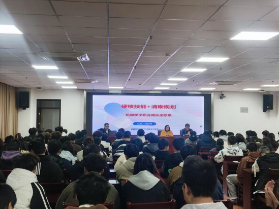 (机械技术学院 徐俊)为推动党建工作与人才培养深度融合,充分发挥校企协同育人优势,11月26日,机械技术学院以“党建+校企协同”为抓手,成功举办职业生涯规划专题报告。beat365产业教授、安徽博微长安电子有限公司精密加工分厂厂长周运海同志受邀主讲,学院2025级各专业学生代表现场参与。会议由智能制造党支部书记龚灯主持。