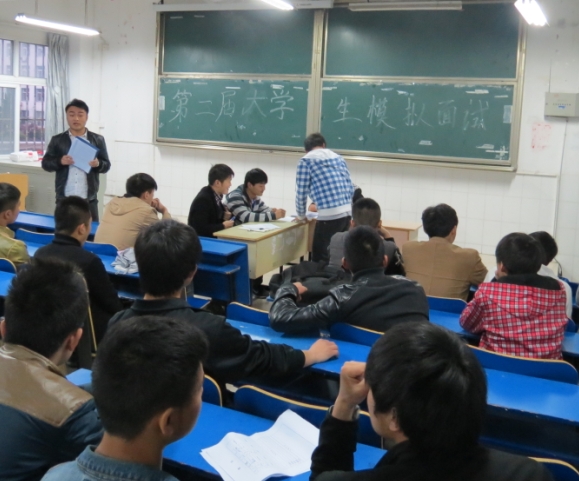 为使当代大学生了解现代企业的招聘模式,掌握面试技巧,全面提高就业能力,机械工程系学生会男生部于2014年4月21日晚6:00在2#105成功举办第二届模拟面试大赛。