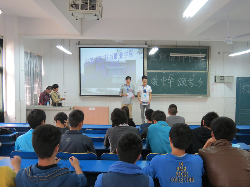 为加强爱国主义教育,激发广大青年学生的爱国热情,由机械工程系学生会秘书处、纪检部联合举办的“爱中华,颂家乡”主题演讲比赛于2013年10月19日下午在2#205成功举行。系学生会各主席、部长出席并担任评委。