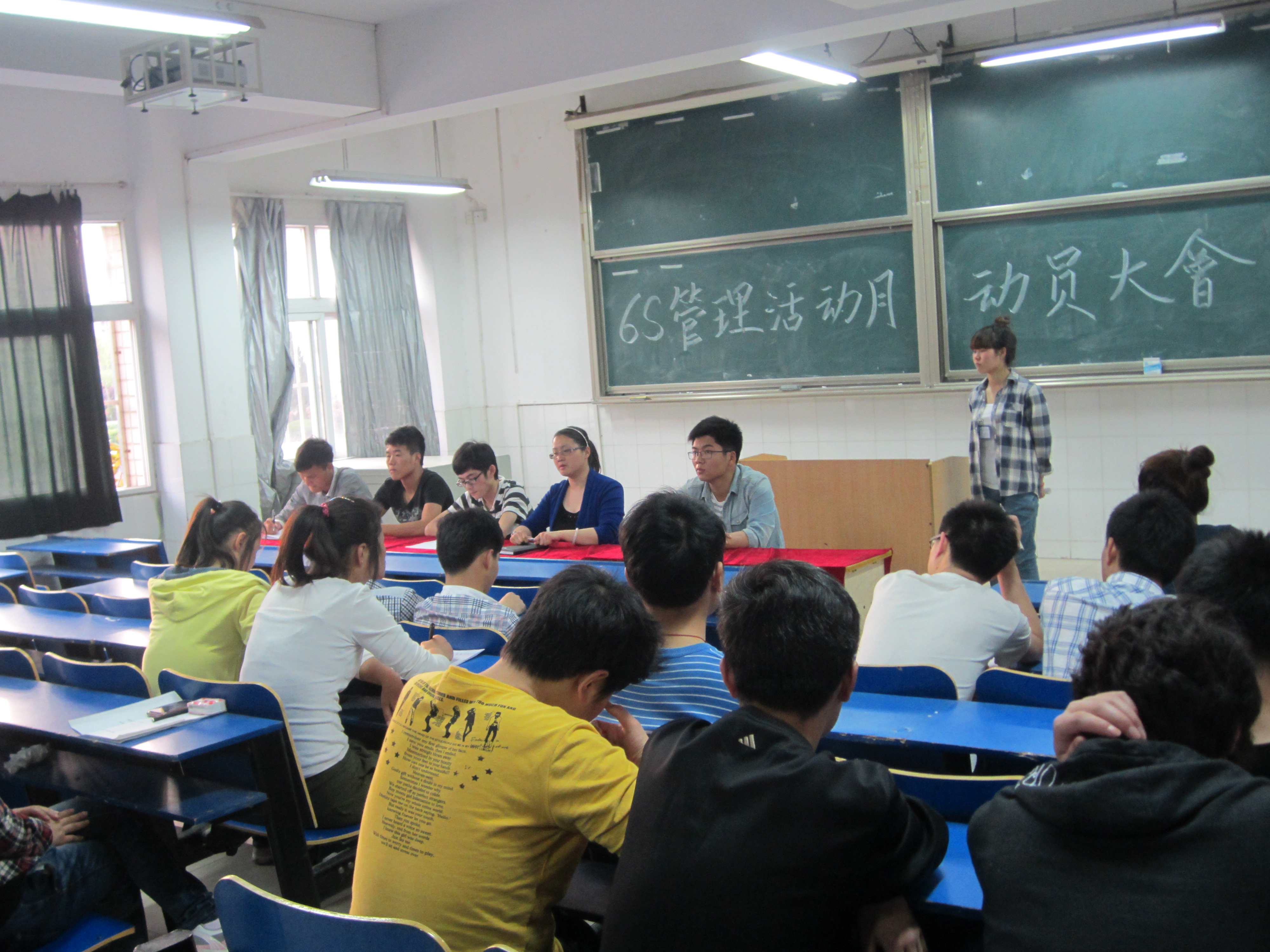 为了迎接学院学风建设年,使学风建设深入到学生宿舍,机械系于2013年4月15日下午6点,在2#105教室召开6S活动月动员大会。学生会主席汪东、副主席徐欢参加了此次会议,我系团总支书记陈思出席了大会。