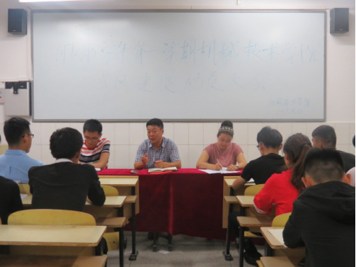 9月22日下午,机械技术学院在二教104教室召开了新学期晚自习和早锻炼动员大会,会议由机械技术学院团总支书记记袁帅主持,党总支书记张宗江、副书记陈思以及2016级、2017级各班班长和体育委员参加了会议。