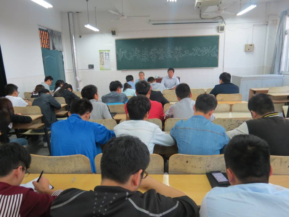 10月14日下午五点,机械系于2教108召开学生会第二次例会,参加会议的有系党总支副书记陈思,系团总支书记孙策以及学生会全体学生干部。