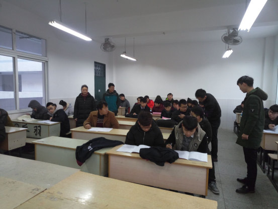 为加强学风建设,1月12日早上七点,机械技术学院党总支书记张宗江、党总支副书记陈思、团总支书记袁帅和学生会主要干部来到二教查看学生早自习情况。