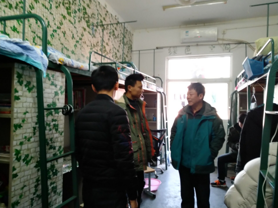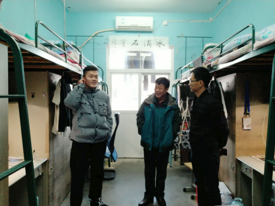 为加强学院宿舍安全卫生状况管理,1月12日下午,由机械技术学院党总支书记张宗江带队,党总支副书记陈思、团总支书记袁帅及团总支学生会主要干部深入学生寝室,查看了寝室卫生及安全情况。