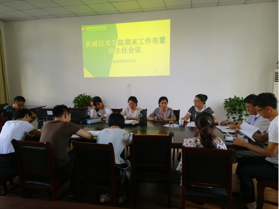 (机械技术学院张艳华) 为保证本学期末学生管理工作的顺利开展,妥善完成期末各项工作,6月27日下午,机械技术学院党总支组织召开期末工作布置班主任会议。会议由院党总支副书记陈思主持,院党总支书记张宗江、团总支书记袁帅、全体辅导员和班主任参加了会议。
