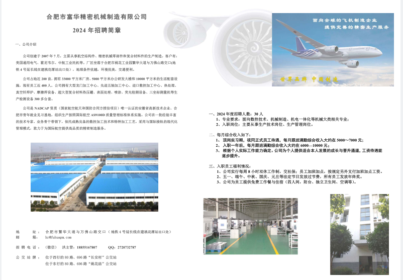 合肥市富华精密机械制造有限公司2024年招聘简章(PDF清晰版见附件)