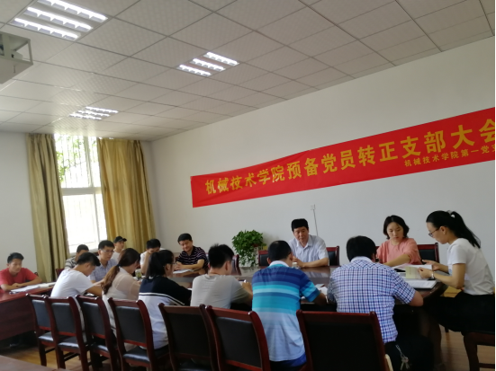 (机械技术学院张艳华) 2017年7月13日上午,机械技术学院第一党支部、第二党支部分别在会议室召开支部大会,讨论罗乃铜等12名预备党员的转正问题,各支部党员及申请转正的预备党员参加了会议。