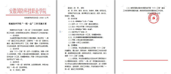 机械技术学院通过开展“六个一工程”建设工作,有力促进了学院学生管理工作,提升了学生综合素质,开创了机械技术学院“一院一品”建设工作的新局面。