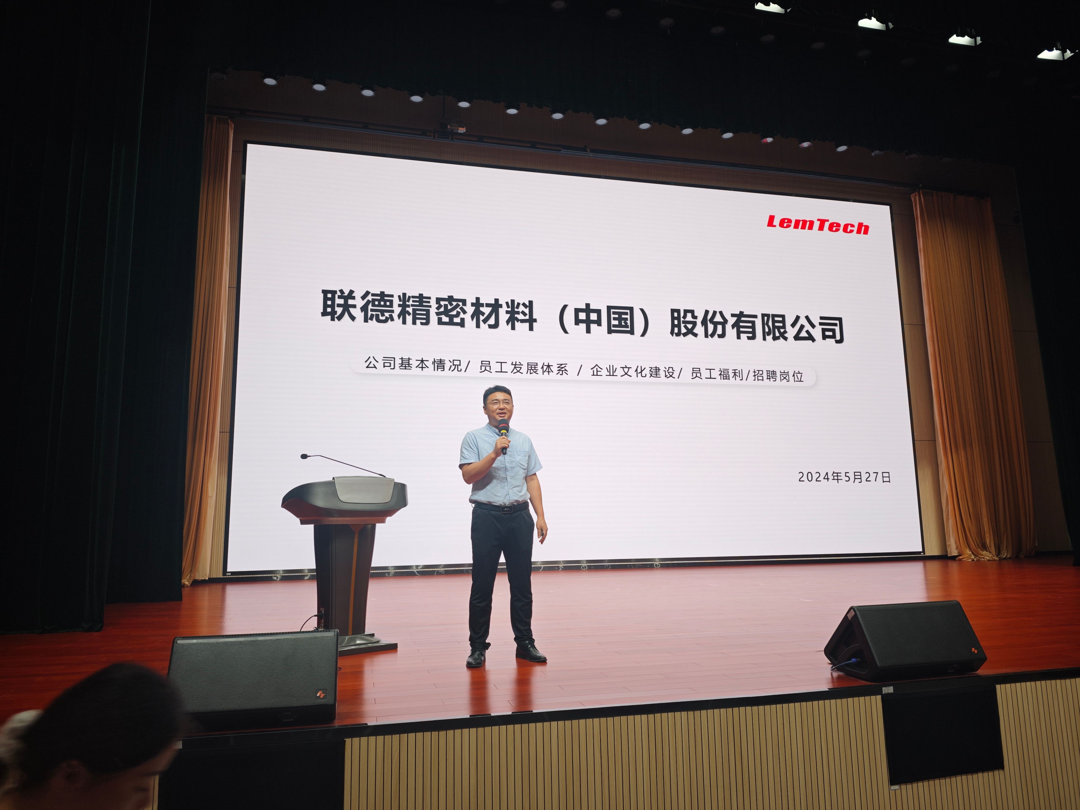 实习动员会结束后,合肥合光精密仪器有限公司、联德精密材料(中国)股份有限公司两家与我院校企合作单位的人事部门负责人分别进行了企业宣讲。他们围绕企业概况、实习岗位、薪资待遇、职业规划以及内部发展等向同学们全方位地展示了企业整体形象、岗位工作环境和晋升发展路径。
