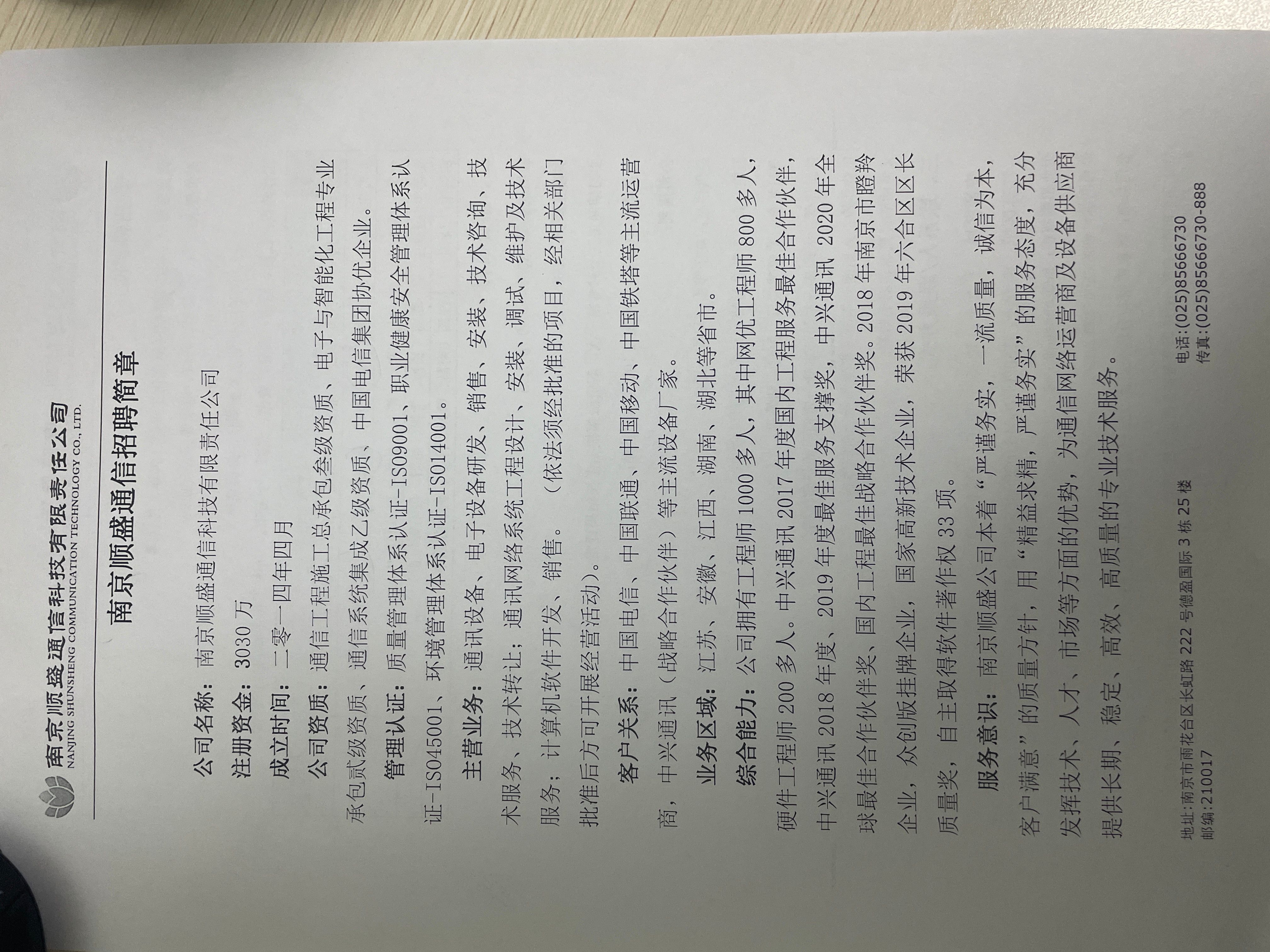 南京顺盛通信科技有限责任公司