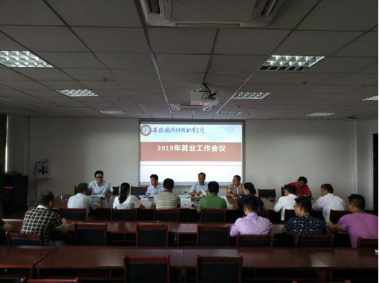 招生就业办主任束传俊对2019届毕业生初次就业率数据进行分析、传达关于就业统计工作文件精神。