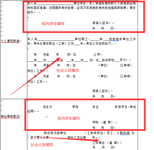 2、《beat365唯一官方网站职业技能评价个人申报审核表》(附件4)(分清楚校内、校外,可填写后打印,也可以打印后手写。承诺部分学员自己签字填写)附件2和附件3人数需一致。
