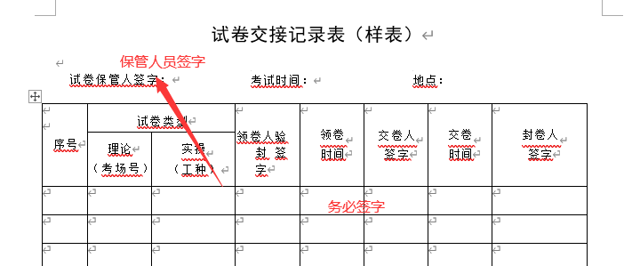 考试中要详细填写《beat365唯一官方网站考场记录表》(附件10)(理论2名考评员签字、实操3名考评员签字)、《职业技能等级评价考生签到表》(附件11)、《职业技能等级评价考试考务、巡考记录表》(附件12),并全部签完字,连同考试试卷一并提交继续教育学院留存(整个考试过程需全程录像,考试结束后三天内将视频送至继续教育学院,无考试录像本次考试作废处理。)