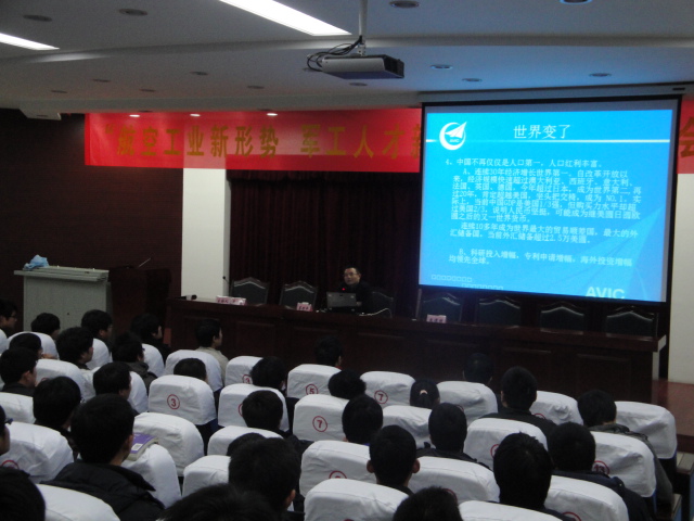李时平从世界政治、经济形势的发展变化对中国军工行业提出的新要求谈起,对我国的军事工业进行了简单介绍,随后着重就中国航空工业集团公司及其人才人员标准进行了详细阐述,勉励我院学子勤奋学习,努力把自己培养为政治合格、德才兼备、技术过硬的复合型人才。