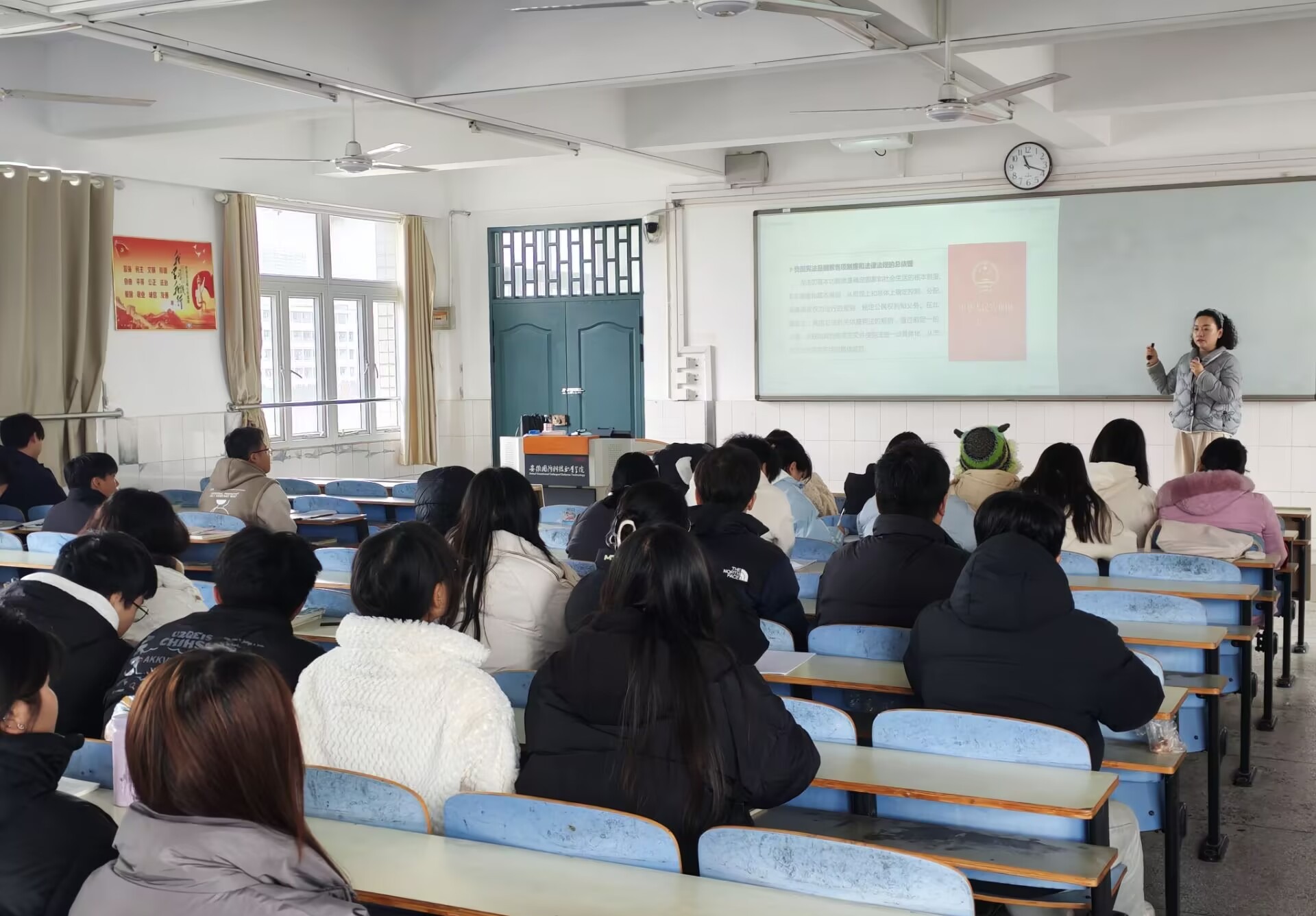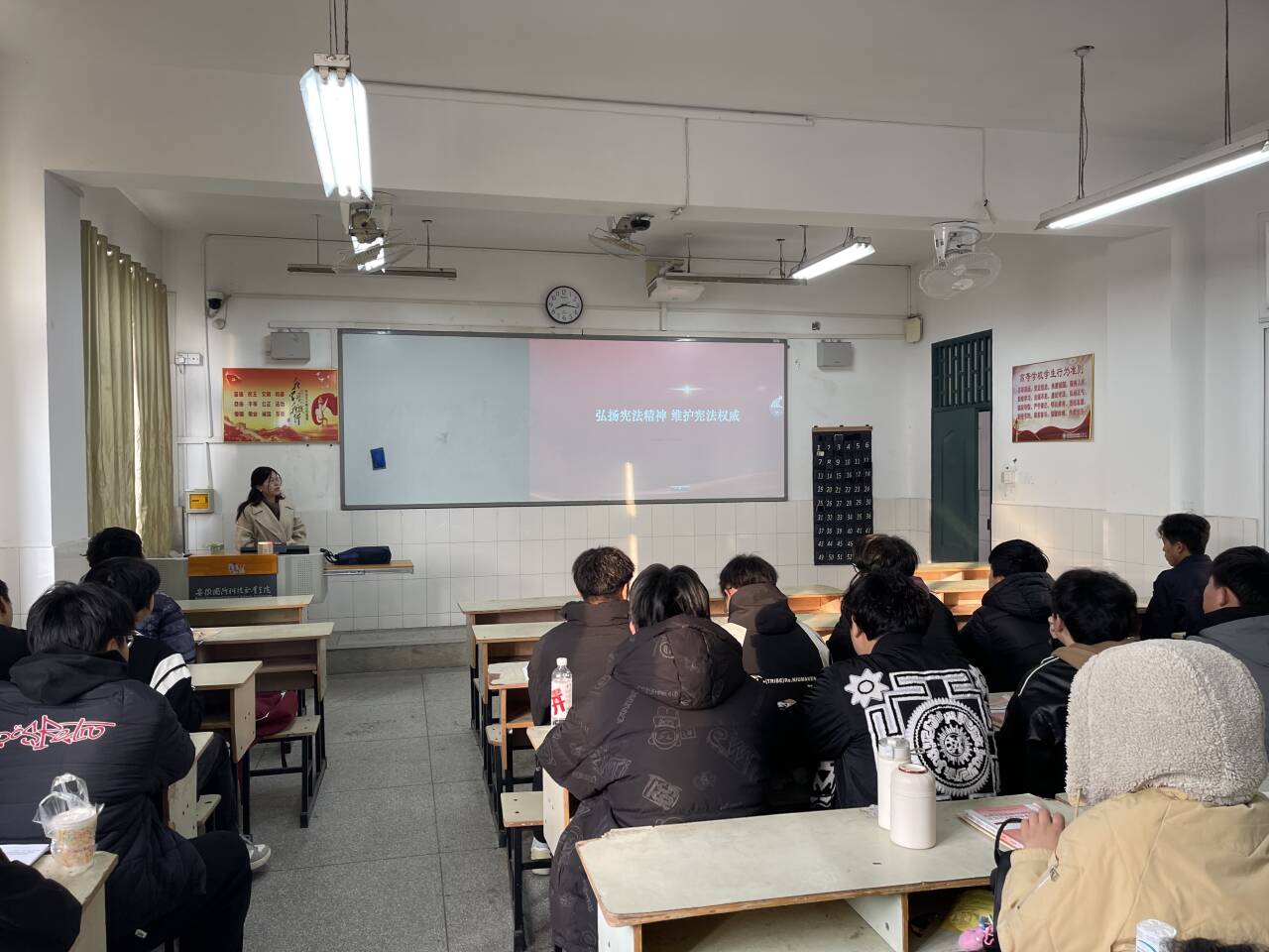 思政课课堂为学生讲授有关宪法的知识