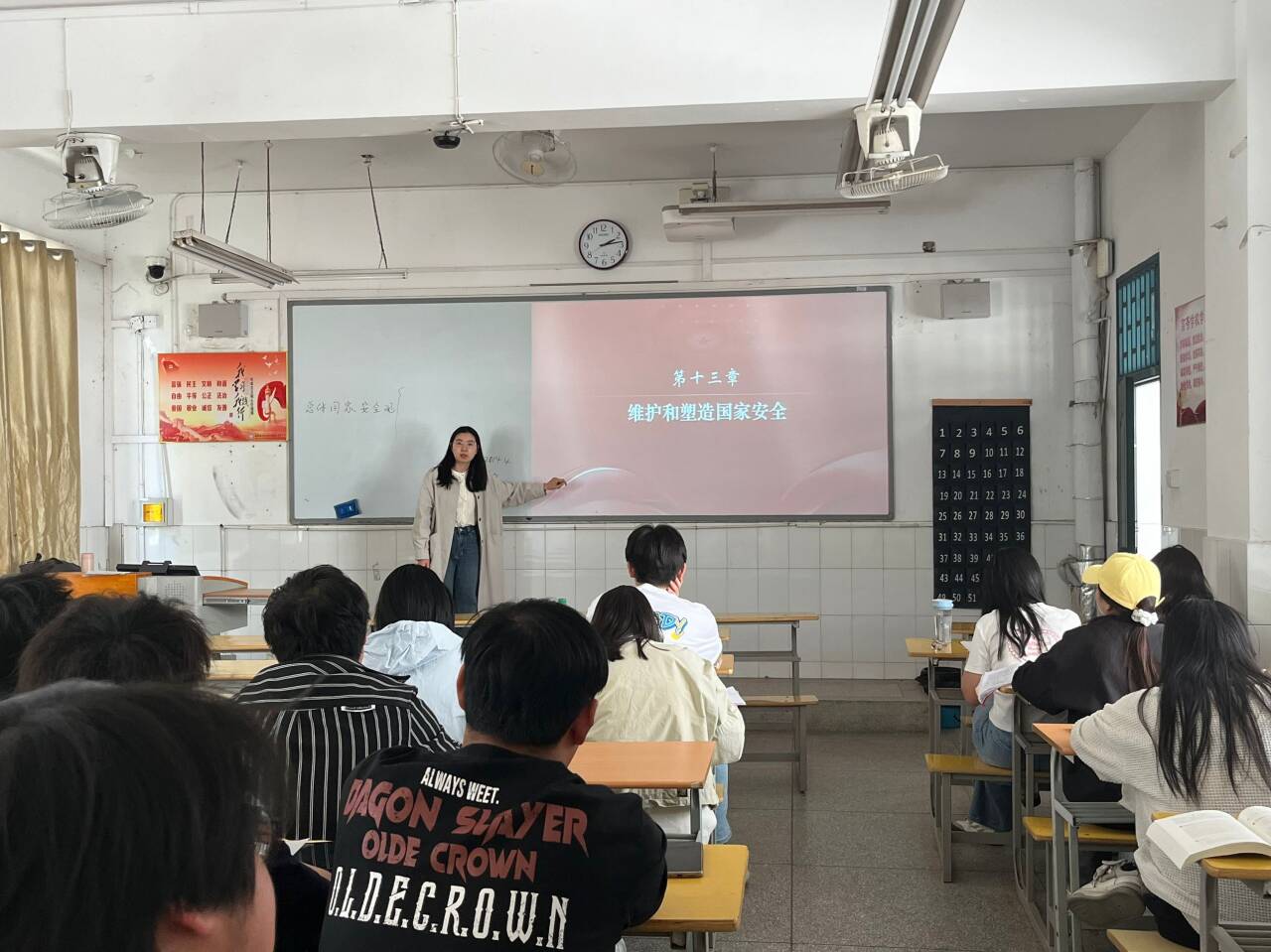 付玉梅老师正在为学生讲授有关《全面贯彻落实总体国家安全观》的内容